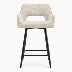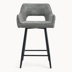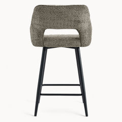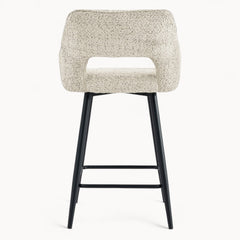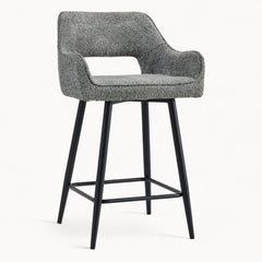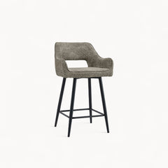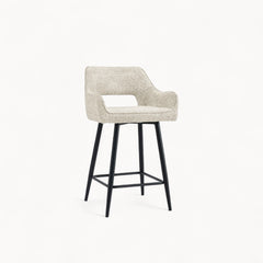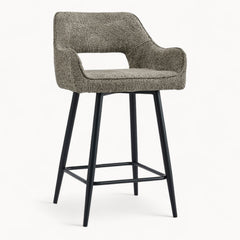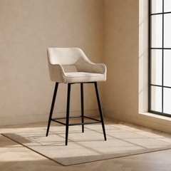 Een verfijnde barstoel met een rustige vorm en een uitgebalanceerde uitstraling.