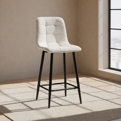 Helder bouclé en strakke lijnen vormen samen een ingetogen ontwerp waarin zachtheid en stille luxe elkaar ontmoeten.