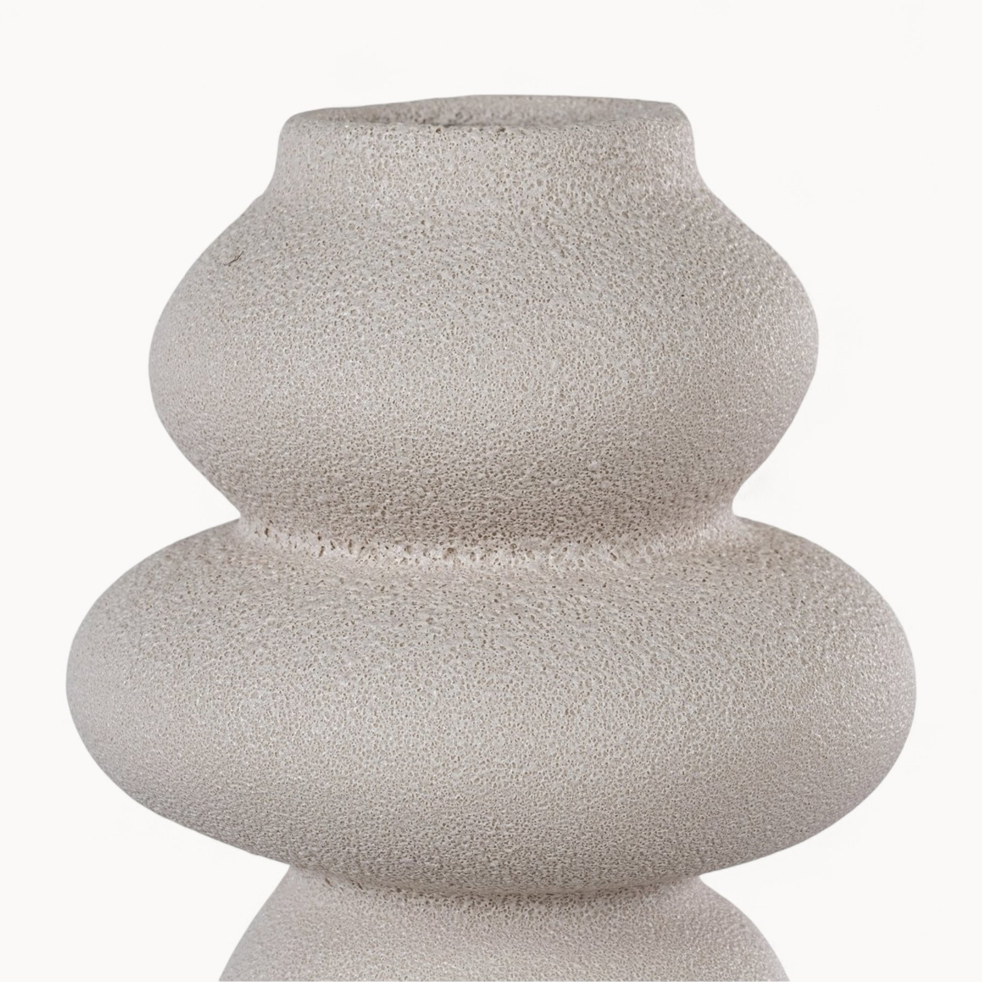 Milo is een sculpturaal statementstuk met een verfijnde balans tussen vorm en rust. De afgeronde segmenten en zachte beige tint zorgen voor een organische uitstraling die moeiteloos opgaat in het interieur. Solo geplaatst of met een enkele tak – Milo ademt design zonder pretentie. Minimalisme op z'n meest expressieve.
