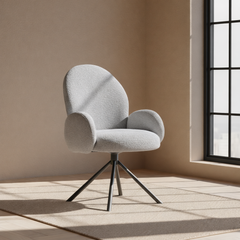 Een elegant silhouet, zachte bouclé en een uitgebalanceerde vorm komen samen in een verfijnd ontwerp dat comfort en moderne rust moeiteloos verenigt.