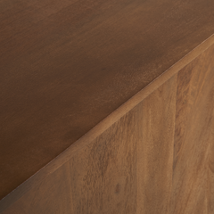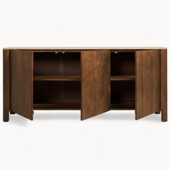 Een royaal dressoir met een rustige vorm en een warme, verfijnde uitstraling.