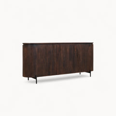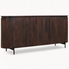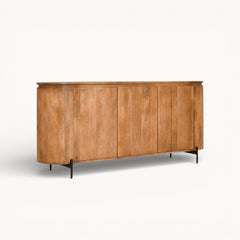 Warm hout, afgeronde contouren en een subtiel reliëf vormen samen een uitgebalanceerd ontwerp waarin kracht en verfijning moeiteloos samenvallen.