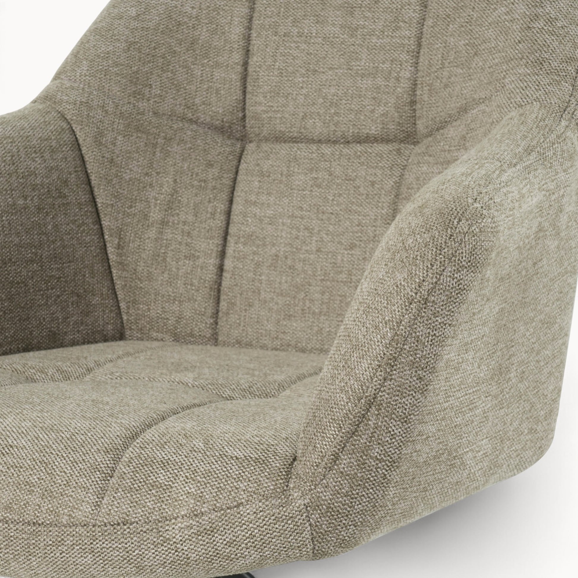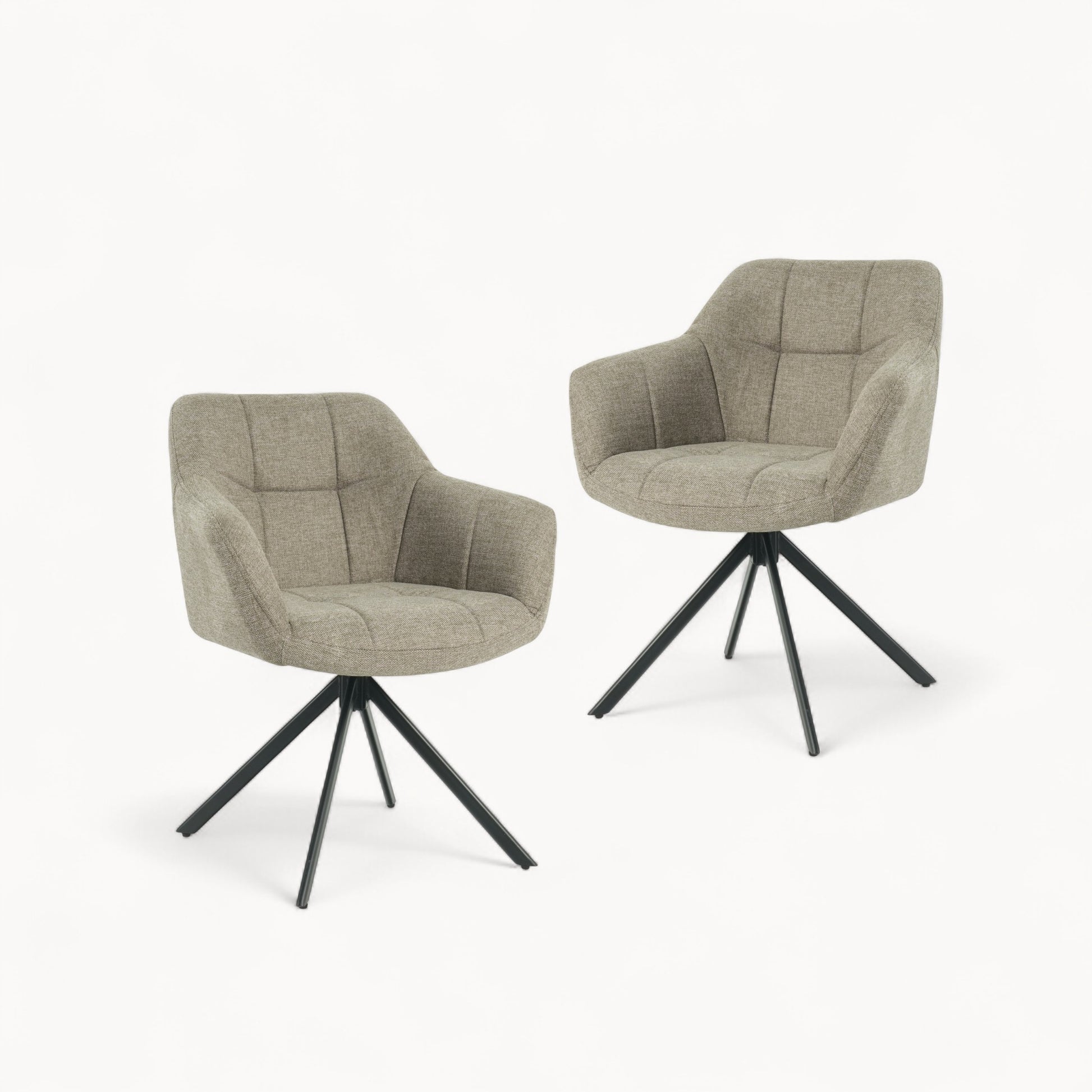 Gezellig tafelen begint met een fijne stoel. Jesse is zo’n stoel waar je zonder moeite uren op blijft zitten. Dankzij de extra comfortabele schuimvulling zit hij heerlijk zacht, perfect voor lange diners of een ontspannen start van de dag met een kop koffie. Het draaibare zitvlak met 180° auto-return maakt Jesse extra praktisch. Even draaien om iets te pakken of met iemand te praten? Geen probleem. En zodra je opstaat, draait de stoel vanzelf terug naar zijn oorspronkelijke positie. Zo blijft je eethoek altijd netjes en opgeruimd. De bekleding heeft een mooie linnen-look stof die niet alleen prettig aanvoelt, maar ook een warme en uitnodigende uitstraling geeft. Jesse is verkrijgbaar in Taupe, Zand en Choco. Drie neutrale kleuren die makkelijk te combineren zijn. Het stevige zwarte metalen onderstel zorgt voor een moderne touch en stabiliteit.