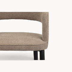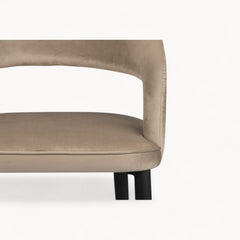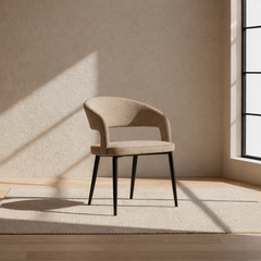 Een krachtig silhouet met zachte stoffering vormt een evenwichtig ontwerp dat stabiliteit, comfort en verfijning moeiteloos samenbrengt.