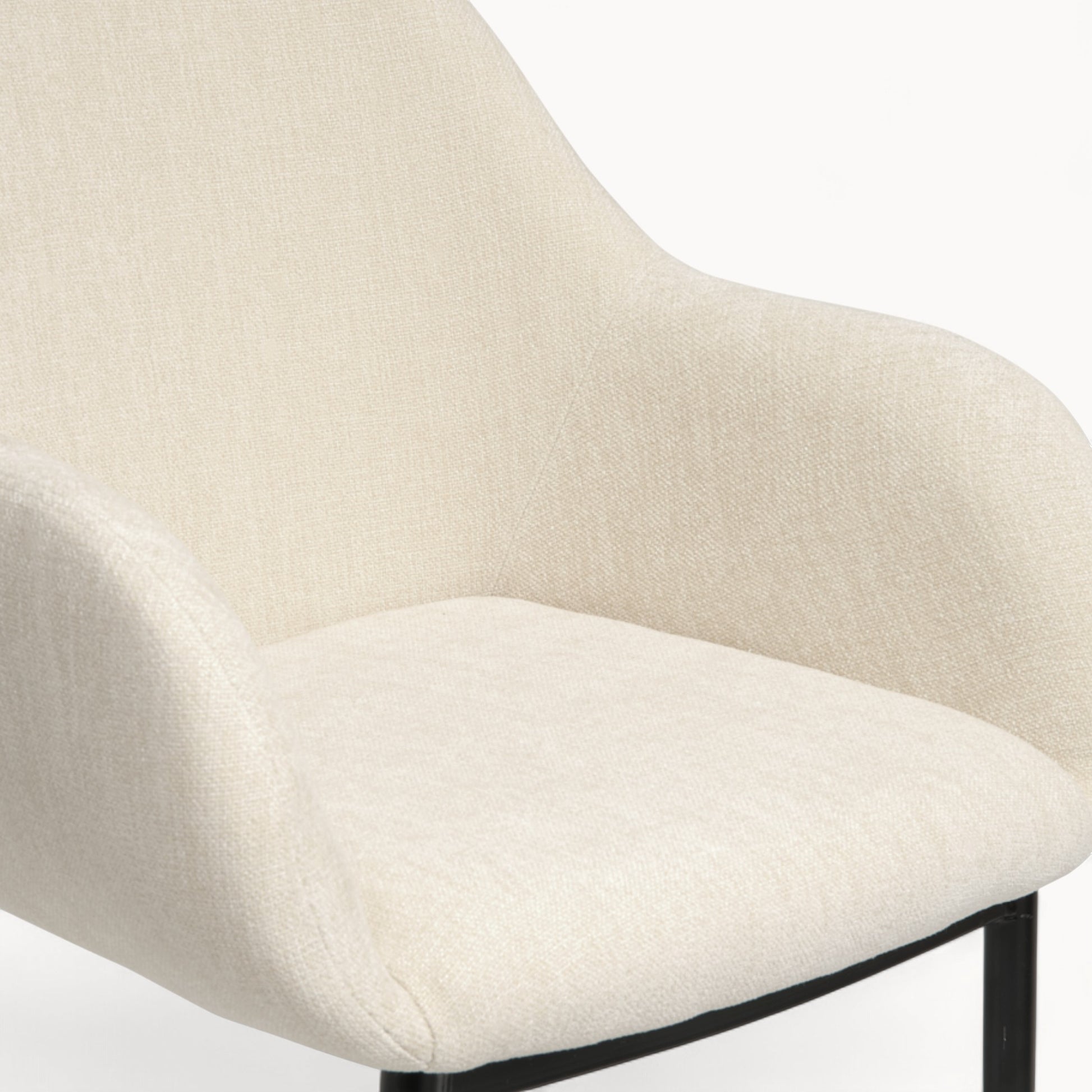 Zara is een stoel die je zonder aarzeling aanschuift. De vorm is uitnodigend, de rugleuning net hoog genoeg, en de zitting voelt stevig én comfortabel. De bekleding heeft een zachte, verfijnde structuur die zich prettig laat voelen, zelfs bij een lange avond aan tafel. Zara is verkrijgbaar in drie kleuren die mooi in balans zijn: een lichte Ecru, een warme Taupe en een diepe Choco. Elke tint brengt iets anders in de ruimte, maar blijft rustig en natuurlijk ogen. Of je nu dineert, werkt of gewoon blijft hangen aan tafel: Zara zit zoals een stoel zou moeten zitten. Comfortabel en uitnodigend.