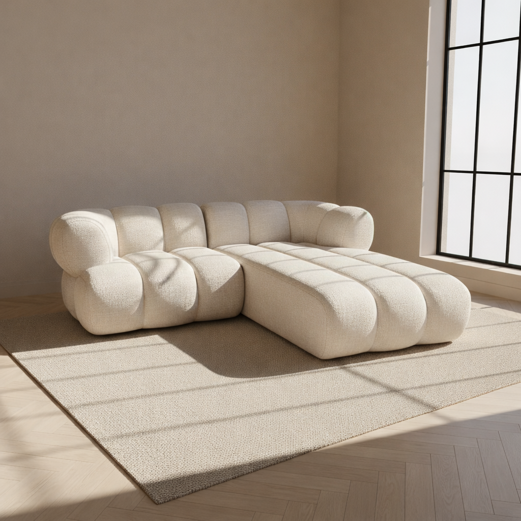 Royale volume, vloeiende belijning en een modulaire opbouw vormen samen een tijdloos ontwerp waarin comfort en verfijning in rustige balans samenkomen.