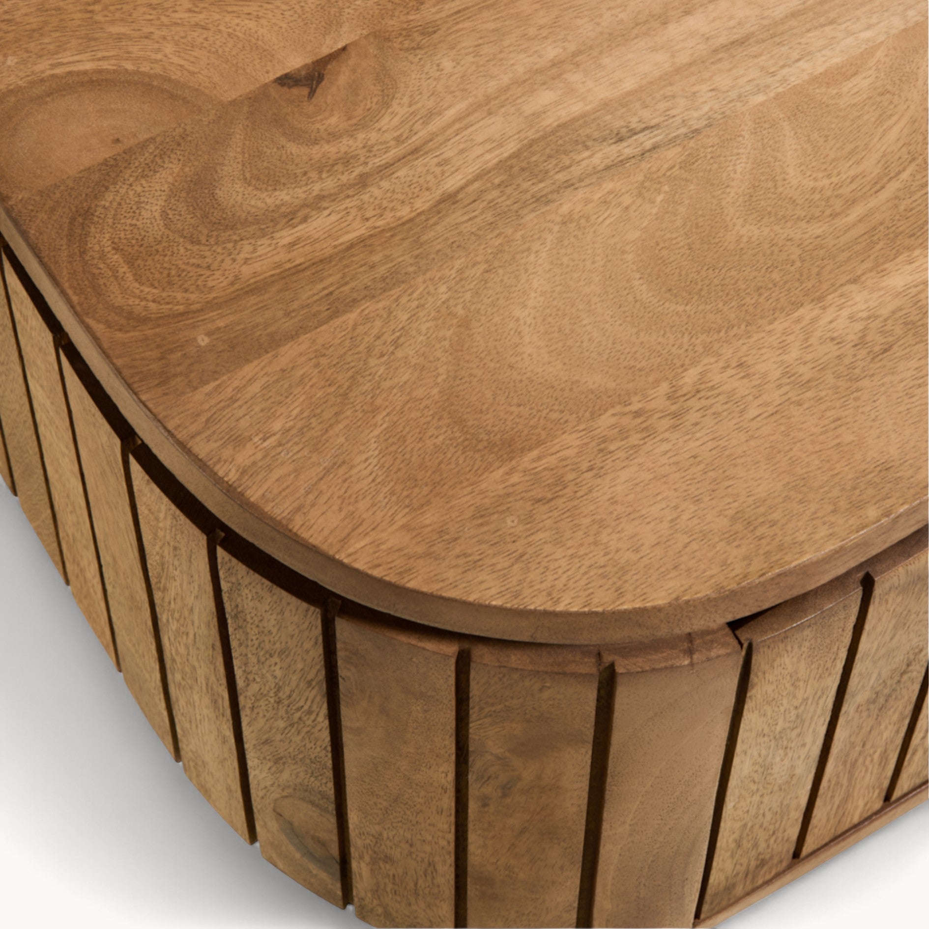 Het hangende Mokka nachtkastje is net zo eigenwijs als handig. Hij hangt stevig aan de muur, waardoor de vloer vrij blijft en je kamer opener lijkt. Ook hier zie je het mangohout met de mooie latjes die licht en schaduw vangen, en de ronde hoeken die het kastje een vriendelijke uitstraling geven. Met zijn 25 x 30 x 45 cm is hij net wat kleiner, maar groot genoeg om achter het deurtje je spullen te bewaren die anders op een stapeltje zouden eindigen. Het bovenblad biedt plek aan je wekker, een leeslampje of gewoon je telefoon. En het fijne: het bevestigingsmateriaal krijg je er direct bij, zodat hij stevig hangt vanaf het eerste moment. Je kunt kiezen voor donkerbruin of lichtbruin, precies wat het beste past bij hoe jij je slaapkamer het liefst ziet. Het Mokka nachtkastje hangt er niet zomaar, het maakt de ruimte echt af.