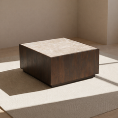Een solide salontafel met een rustige vorm en een verfijnde uitstraling.