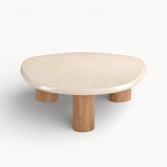 Een organisch vormgegeven salontafel met een lichte en rustige uitstraling.
