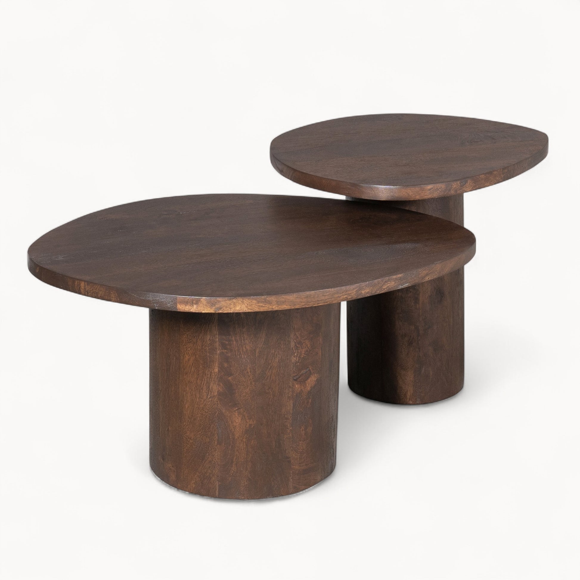 Salontafel Mirre is een set van twee tafels. Deze tafel in een bruine kleur is een moderne en stijlvolle toevoeging aan je interieur. Deze set van twee tafels is gemaakt van mangohout wat zorgt voor een stijlvolle uitstraling. Het strakke design en de ronde vormen maken de tafels veelzijdig en gemakkelijk te combineren.