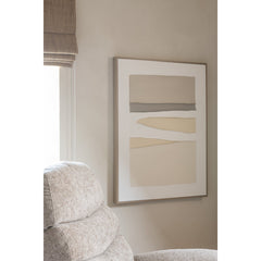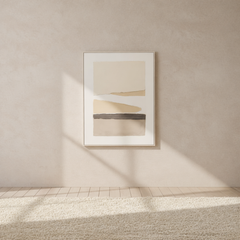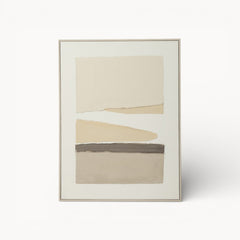 Een schilderij met natuurlijke texturen en een warme, kalme uitstraling.