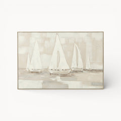 Een evenwichtig kunstwerk dat warmte en diepte toevoegt aan de ruimte.