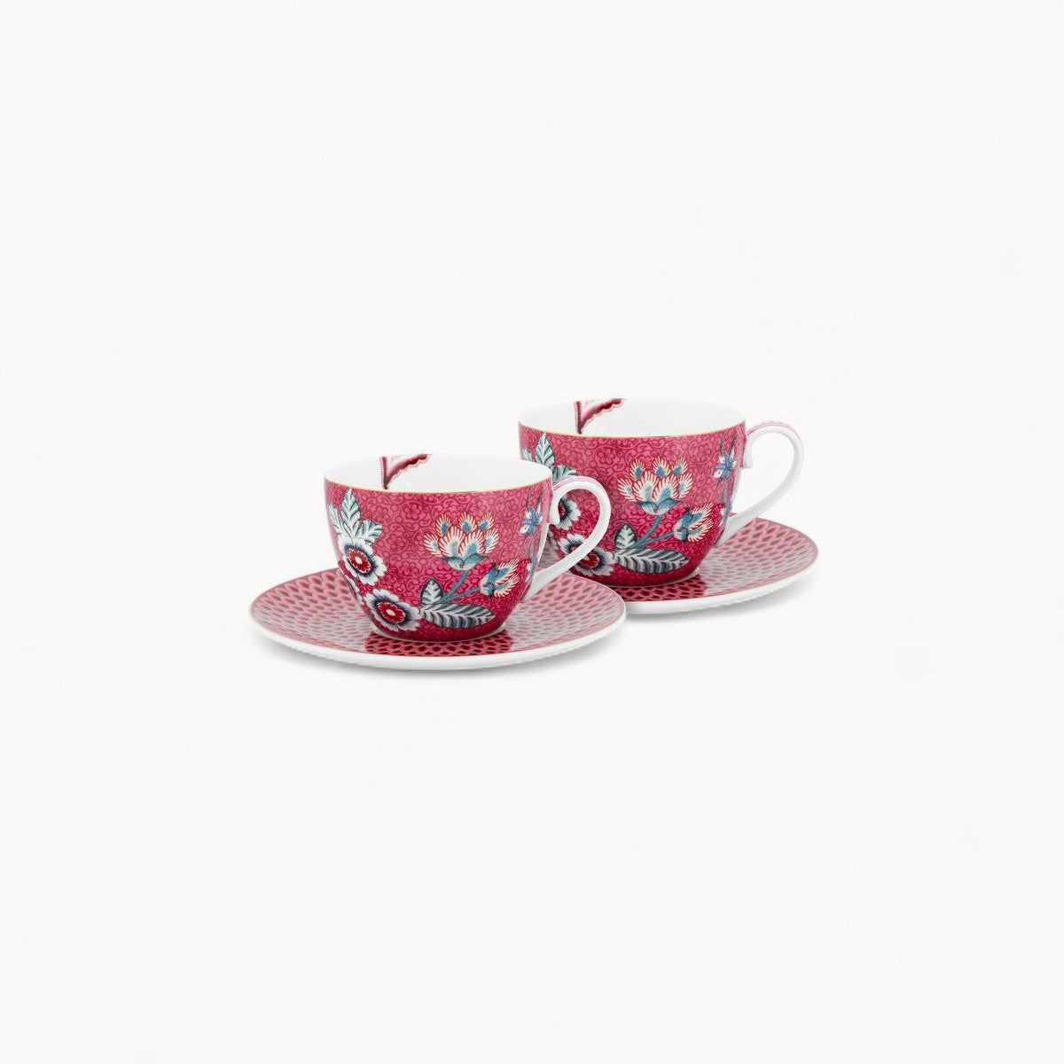 Set/2 Cups & Saucers Flower Festival Dark Pink 280ml