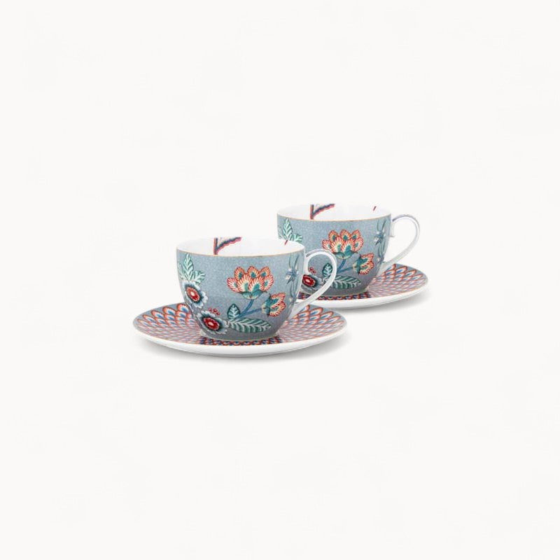Set/2 Cups & Saucers Flower Festival Light Blue 280ml