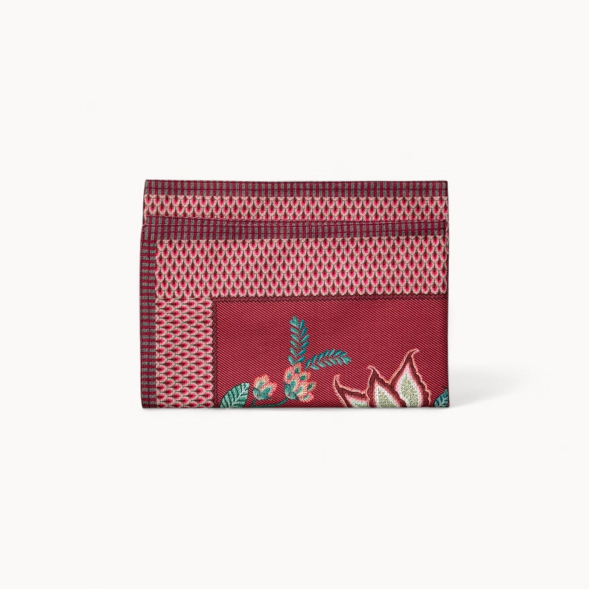 De tafelloper is gedecoreerd met bloemige ornamenten die geïnspireerd zijn op de houten Indiase bogen en gecombineerd zijn met de verfijnde Seigaiha golfjes print die typisch Japans is. Dit zorgt voor een uniek en opvallend ontwerp dat een vrolijke en feestelijke sfeer creëert op elke eettafel.
