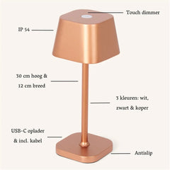 Compact van formaat, groots in beleving. Ava is een draadloze tafellamp die moeiteloos sfeer toevoegt aan de ruimte. De verfijnde afwerking, in kleuren als mokkabruin en goud, maakt haar een subtiel statement piece. Dimbaar via touch en oplaadbaar via USB-C – ideaal voor op tafel, naast het bed of op het terras. Ava is veelzijdige luxe in zijn puurste vorm.