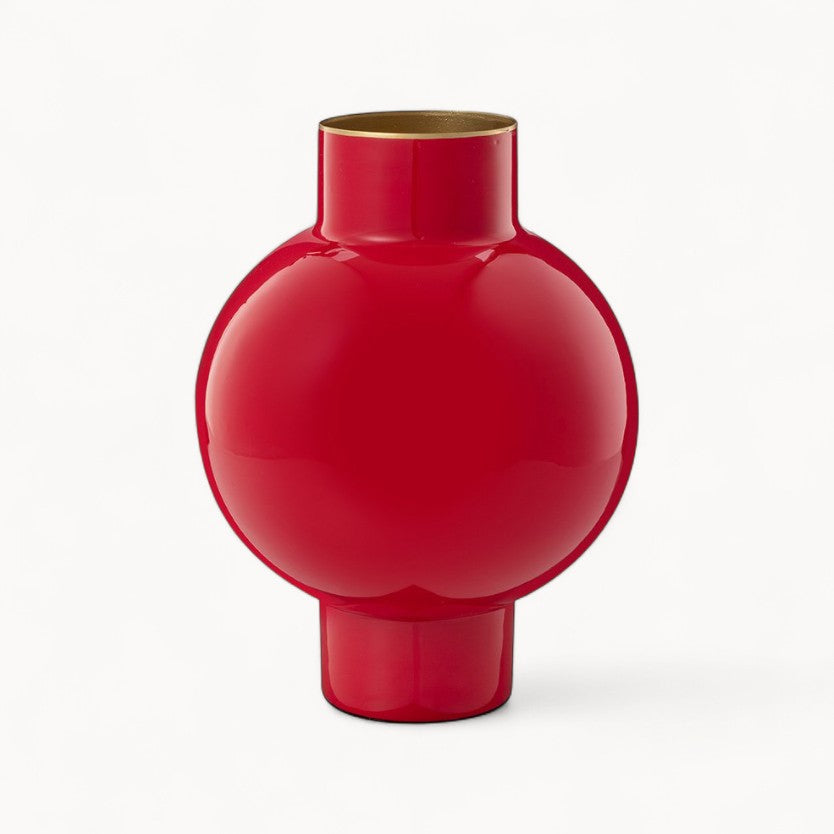 Het strakke en stijlvolle ontwerp van deze metalen vaas voegt een vleugje verfijning toe aan elke kamer, of het nu op een schoorsteenmantel, bijzettafel of als middelpunt op uw eettafel wordt getoond. De veelzijdigheid ervan maakt het mogelijk om naadloos te mengen met verschillende decoratiestijlen, van modern en minimalistisch tot eclectisch en bohemien.