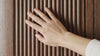 Warm mangohout, verfijnde latdetails en zacht afgeronde lijnen vormen samen een wandkast die royale opbergruimte combineert met een rustige, luxe uitstraling.